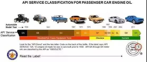 就汽油机而言,API把1960年之前的机油定义为“SB”,但当时还存在着一种高的等级,叫做“API Service MS”, 1968年以后则分别被修改成今天我们所称呼的“API SC”,或者“SD”。