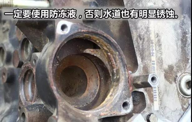 如果此前在水箱中加入过硬水(自来水等),或使用了劣质防冻液,很容易会在冷却系统中形成水垢(水箱、管路),导致发动机热交换效率降低,水温升高,橡胶件和水管老化,寿命缩短;当发动机在高温下运行时,可能将气缸垫儿击穿,使水道油路相连,造成润滑失败;长期的高温还致使活塞和缸体缝隙减小,磨损增加,马力减小,油耗增加,发动机寿命降低,严重者出现烧缸抱瓦。